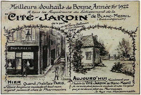 Carte postale ancienne de la Cité-Jardin du Blanc-Mesnil