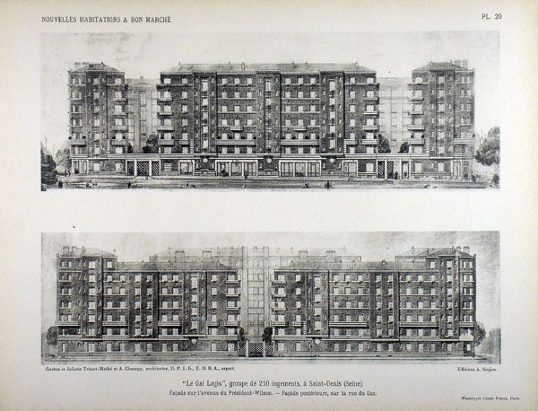 Souhaitant loger plus de locataires, l’OPHBM du Département de la Seine privilégie les collectifs dès la fin des années 1920. La crise économique, augmentant les coûts de construction, va renforcer ce choix. Henri Sellier impulse la construction d’une quinzaine de cités-jardins en banlieue parisienne. Le département de la Seine, moins dense que Paris, dispose de terrains libres qui profitent à la réalisation du projet de cité-jardin. À Stains, entre 1921 et 1933, les architectes Eugène Gonnot et Georges Albenque édifient une cité-jardin de 456 logements en pavillons et 1220 en collectifs.