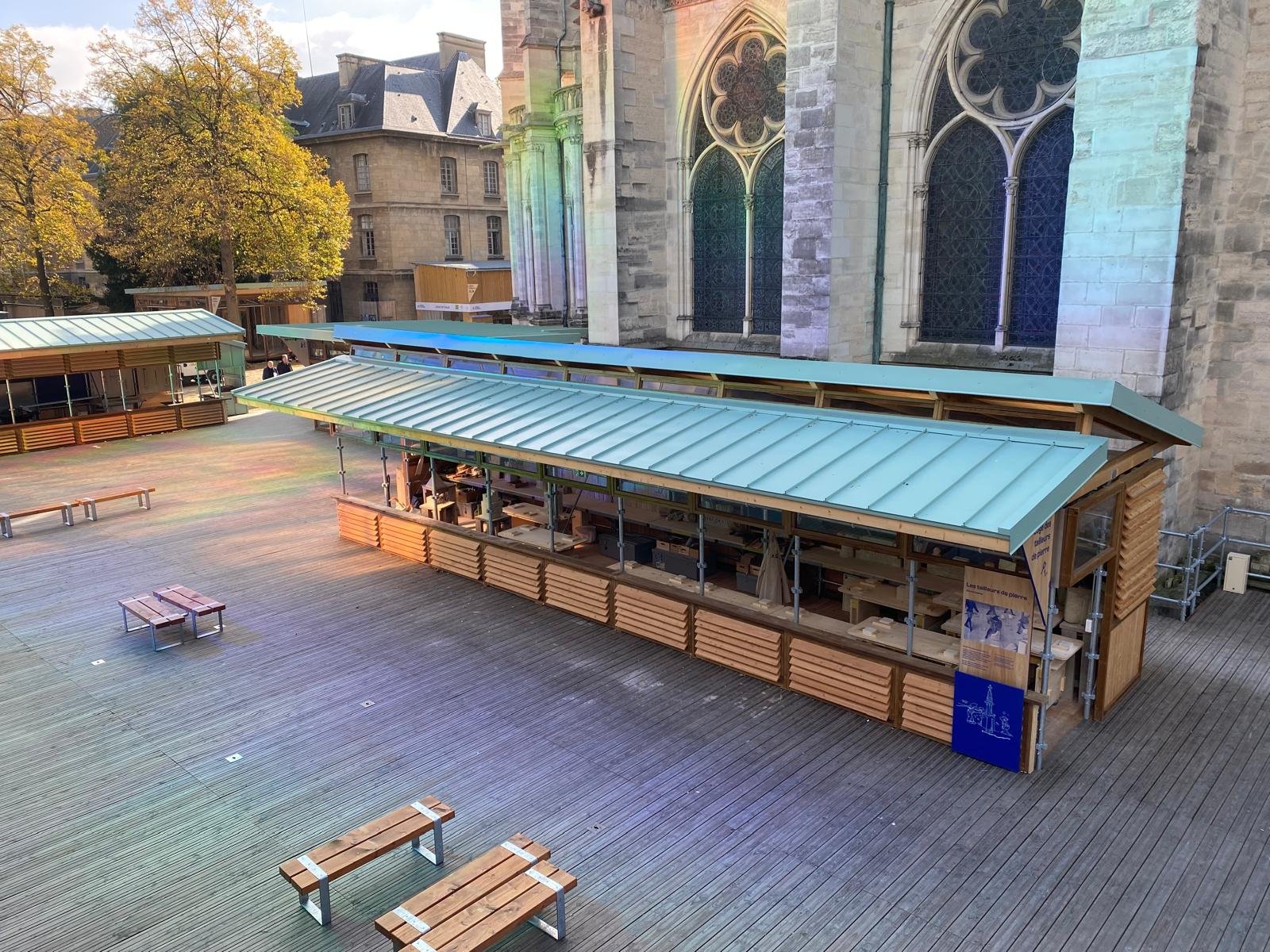 Ce chantier architectural spectaculaire mené par des entreprises spécialisées dans la restauration des monuments historiques durera au moins jusqu'en 2028. Vous pouvez visiter le chantier de la flèche avec des galeries didactiques, des loges d'artisans proposant des démonstrations, des espaces numériques et immersifs.